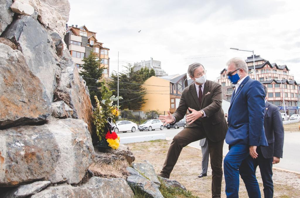 El acto se realizó en la Plazoleta Plüschow y estuvo encabezado por el embajador de Alemania en Argentina, Ulrich Sante, acompañado por el cónsul honorario de Alemania en Ushuaia, Rafael Fank; y por autoridades municipales y provinciales.