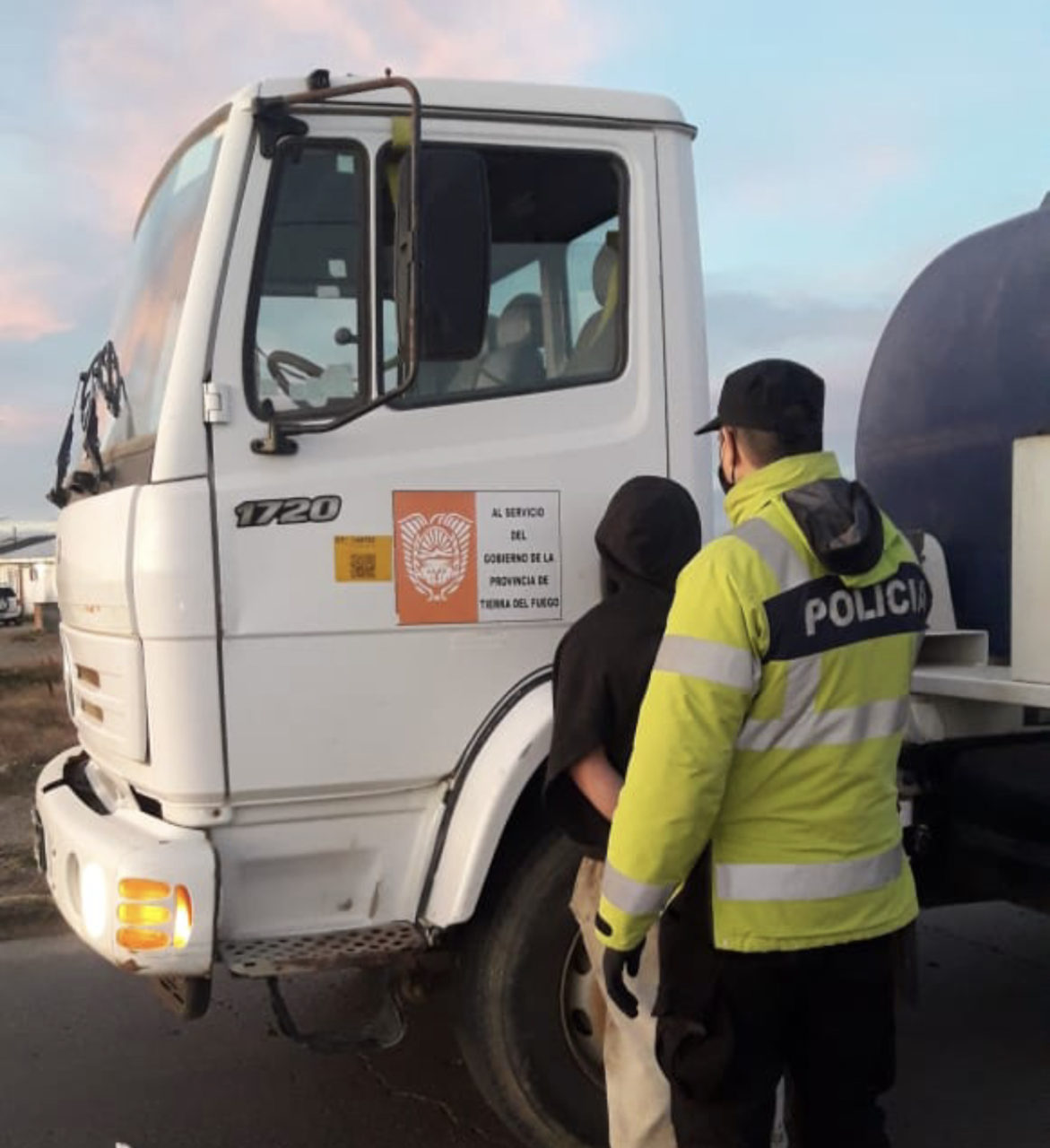 Finalmente, el camion Mercedes Benz fue parado en el sector de la rotonda de Pacheco y Perón: el conductor fue detenido e identificado como Cristian Eduardo Aguilar Barria.