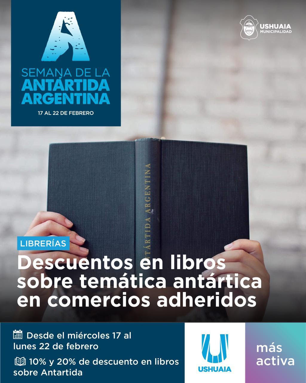 Finalmente, desde el 17 hasta el 22 de febrero, distintas librerías de la ciudad se sumaron a otorgar beneficios en la compra de libros sobre la temática antártica: 10% de descuento en La Boutique del Libro en San Martín 1120, 10% de descuento en Ushuaia Libros en 25 de Mayo 330, 10% de descuento en La Última Bita en San Martín 130, 10% de descuento en Monte Olivia en San Martín 499, 20% de descuento en World’s End en San Martín 505.