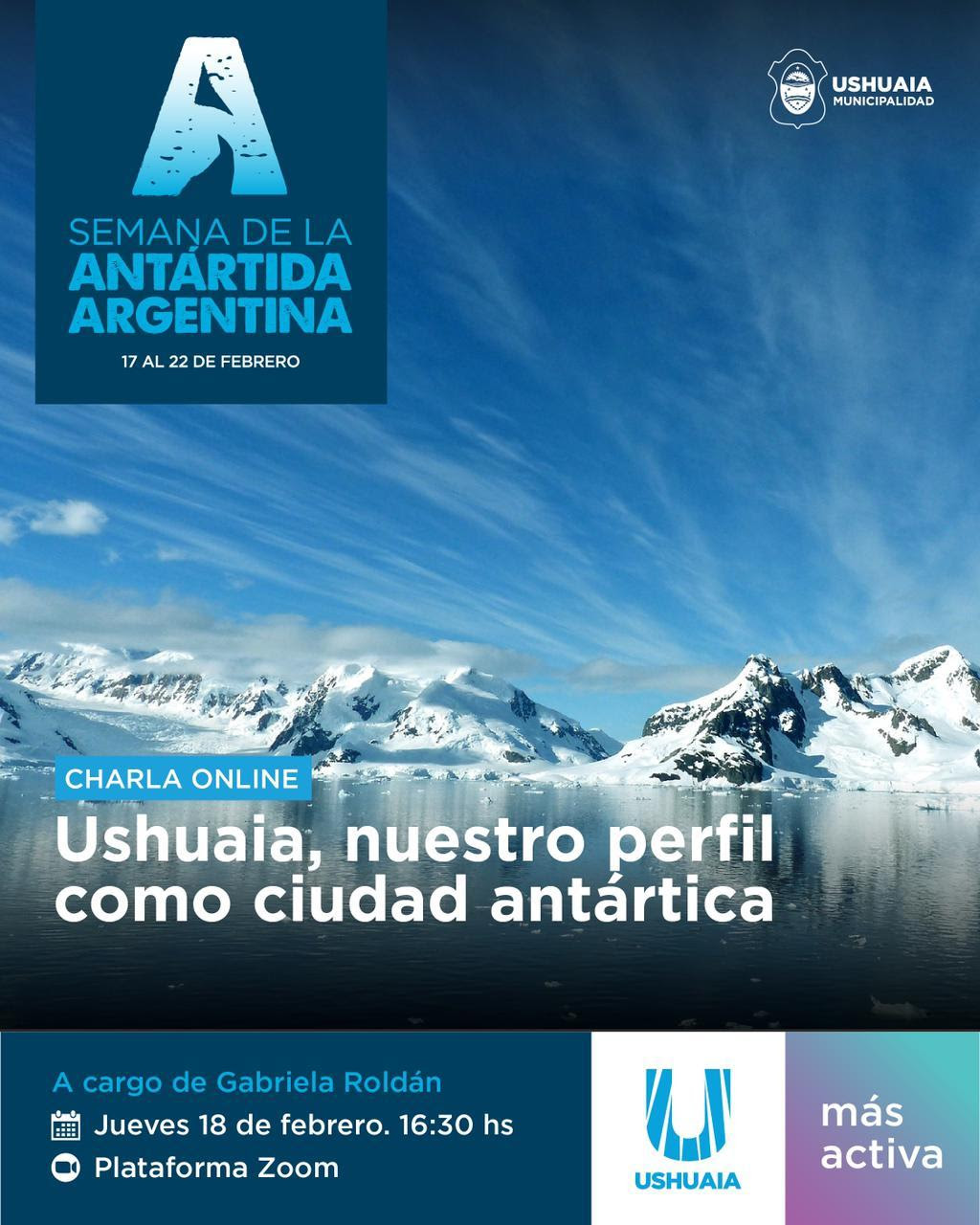 Se realizará una presentación por parte de la Dra. Gabriela Roldán, vecina de la ciudad de Ushuaia, socióloga y especialista en temáticas antárticas de la Universidad de Canterbury, Nueva Zelanda. Estará enmarcada en un trabajo de investigación sobre la identidad de las ciudades puerta de entrada a la Antártida y se difundirán los resultados obtenidos en los talleres que se realizaron en nuestra ciudad. Se dictará mediante la plataforma Zoom, el día jueves 18 de febrero a las 16:30.
