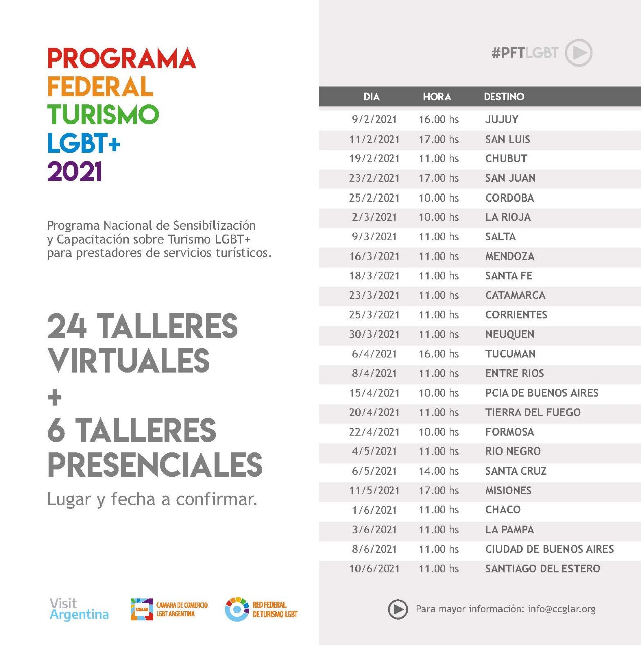 En el encuentro se presentarán temáticas relacionadas al desarrollo del Turismo LGBTQ+ en Argentina, las principales tendencias y recursos útiles para incursionar en el segmento que conforman viajeras y viajeros del colectivo LGBT+, así como también experiencias de destinos consolidados.