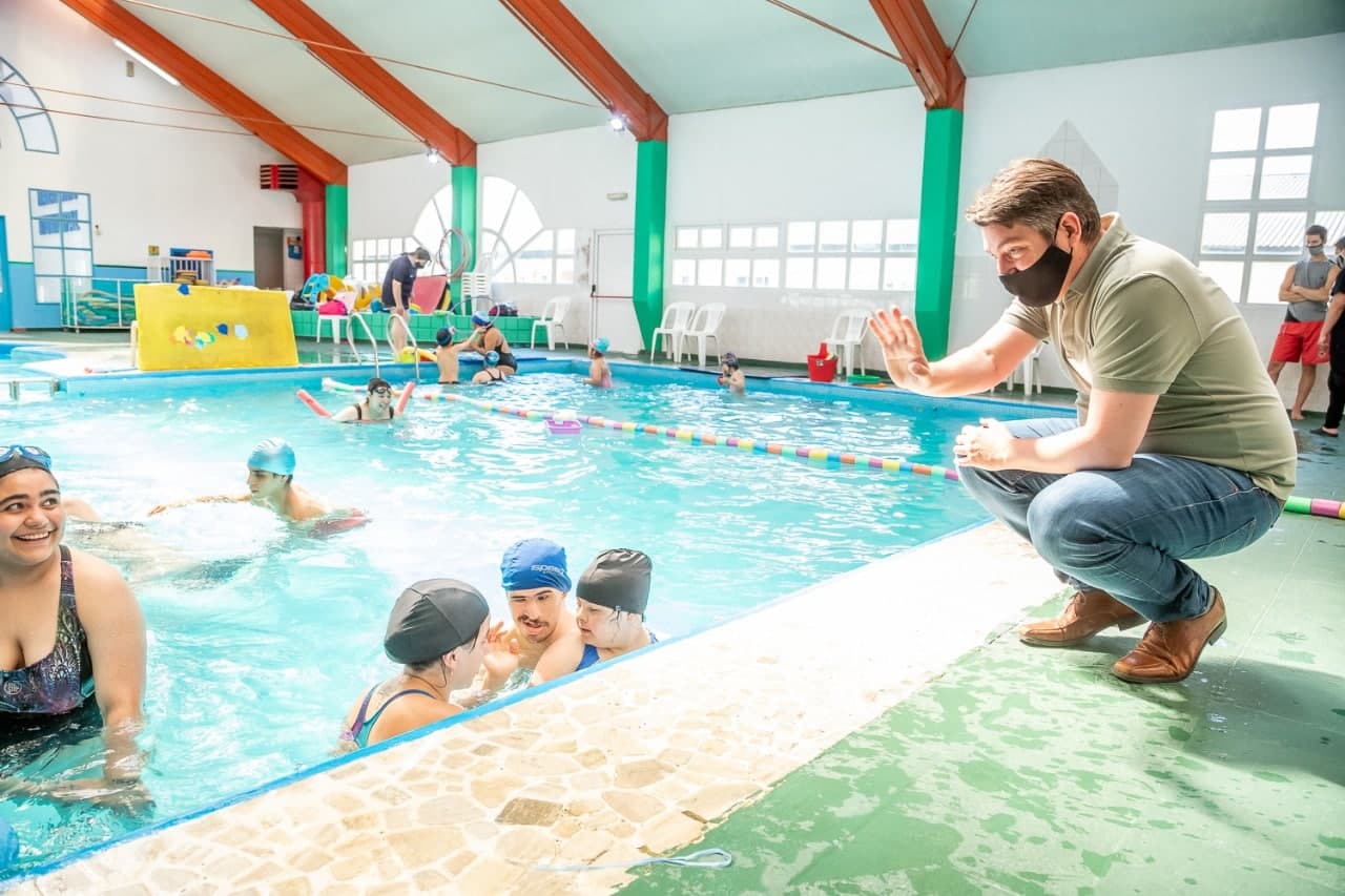 El intendente Martín Perez estuvo presente ayer en el natatorio Municipal Eva Perón, en el marco de una recorrida a las actividades de Deporte Adaptado que la Agencia de Deportes, Cultura y Juventud ofrece para el verano.