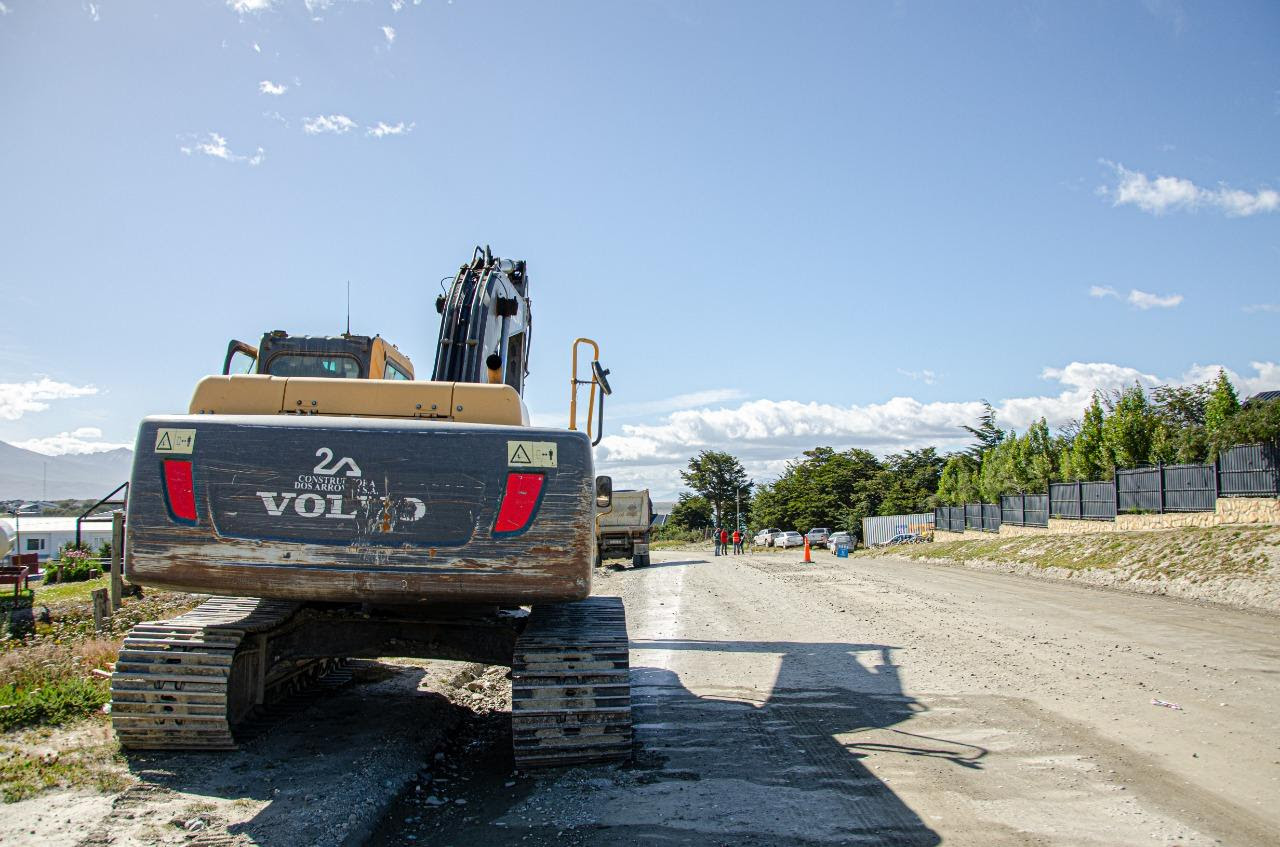El inicio de los trabajos con retroexcavadoras y movimientos de suelo fue en el sector del hotel, en dirección a la calle Bahía Grande, donde se realizarán cortes de tránsito parciales y direccionados.