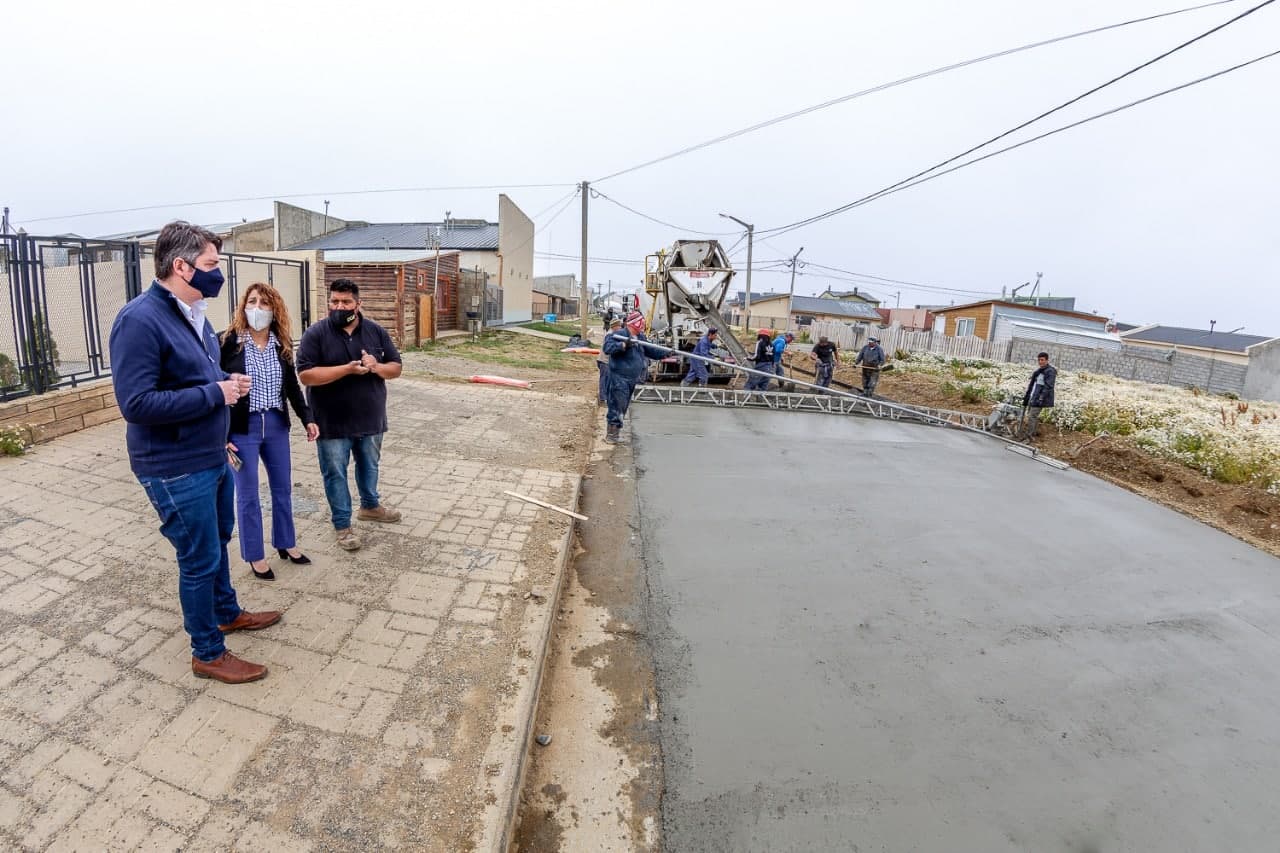 El intendente Martín Perez, junto a la secretaria de Planificación, Inversión y Servicios Públicos, Silvina Mónaco, estuvo presente en los trabajos de hormigonado sobre la calle Madre Teresa de Calcuta, en el barrio CGT.