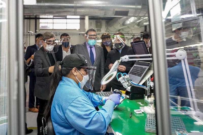 Durante la recorrida, visitaron las líneas de producción de microondas, de televisores, y de teléfonos celulares.