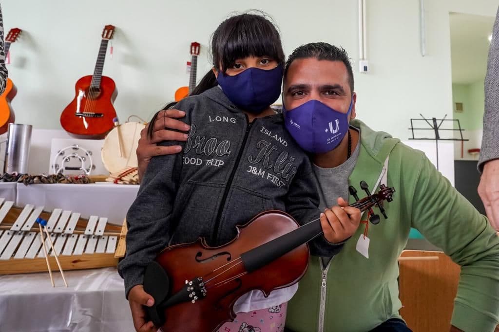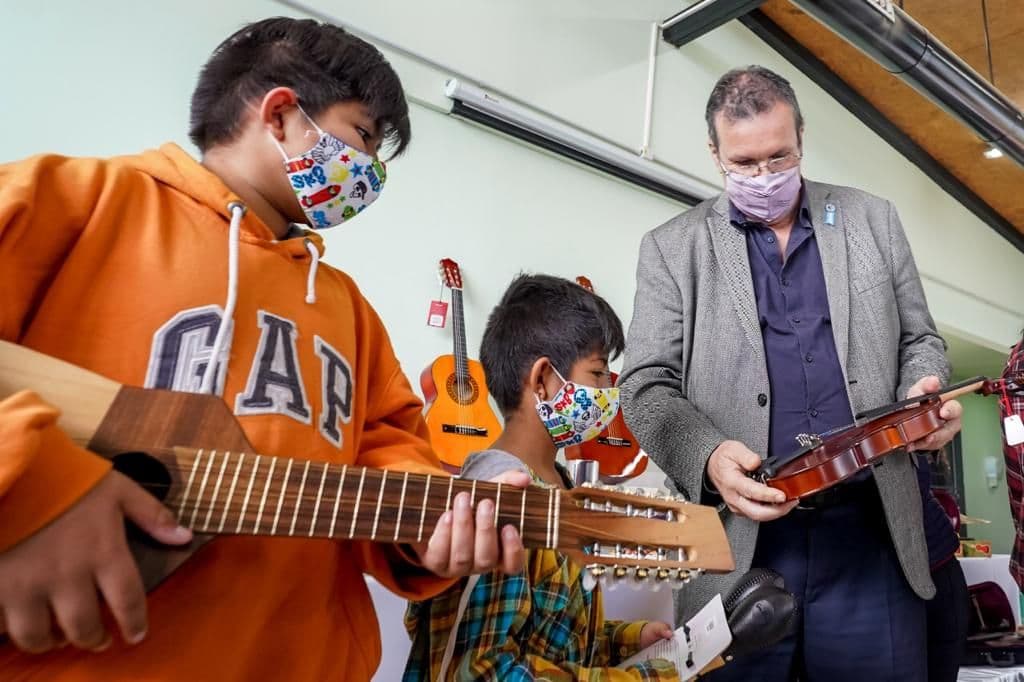 Bauer, en tanto, valoró que “ahí tenemos los instrumentos, que son muy hermosos, las guitarras, los bombos, los sikus, pero son muchos más hermosos cuando estén en manos de nuestros niños, niñas y jóvenes”, y afirmó que “es más hermoso cuando se arman las orquestas, cuando hay un profesor que le enseña a los chicos, cuando juntos empiezan a desarrollar y hacer aparecer las melodías de ellos mismos”.