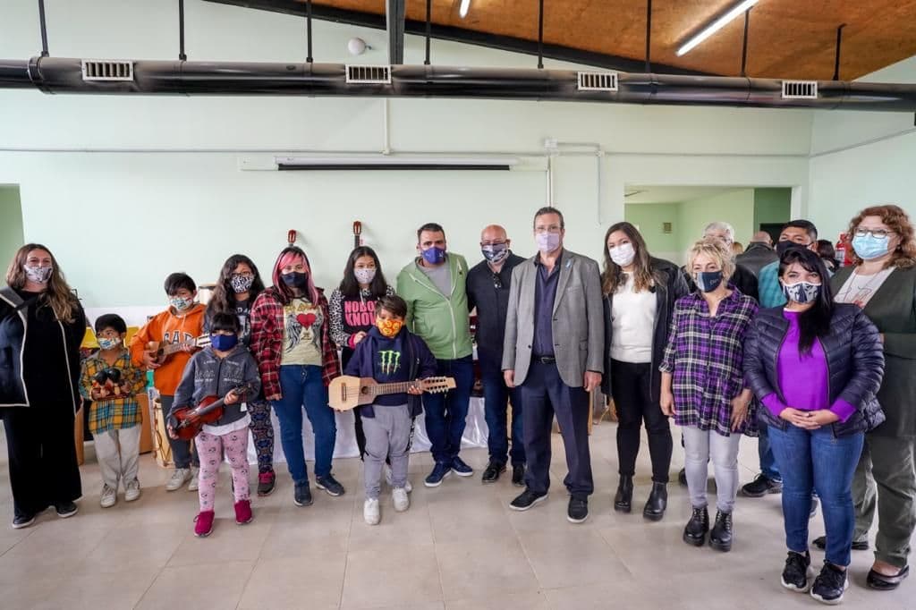 El intendente de Ushuaia, Walter Vuoto, hizo entrega de instrumentos musicales para la nueva orquesta infanto juvenil Mar de Fueguitos, conformada por niños y jóvenes del KyD. Estuvo acompañado por el ministro de Cultura de la Nación, Tristán Bauer, y la secretaria de Cultura y Educación municipal, María José Calderón.