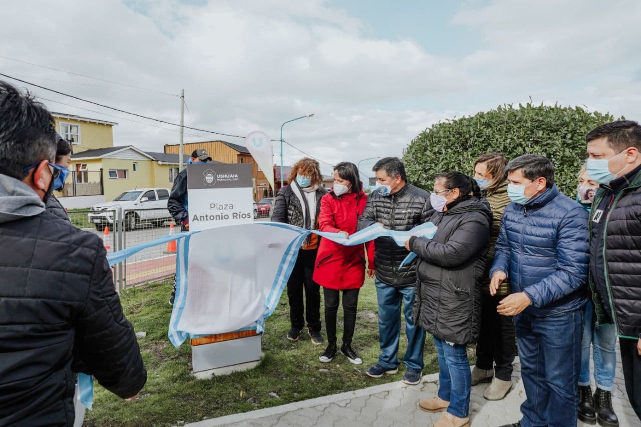 La Municipalidad de Ushuaia inauguró la plaza ubicada en avenida Alem y Cámpora, en el barrio Onaisin, que fue renovada en su totalidad y lleva el nombre de Antonio Ríos, trabajador municipal y referente vecinal que abogó por la recuperación de este espacio para uso de los niños y niñas.