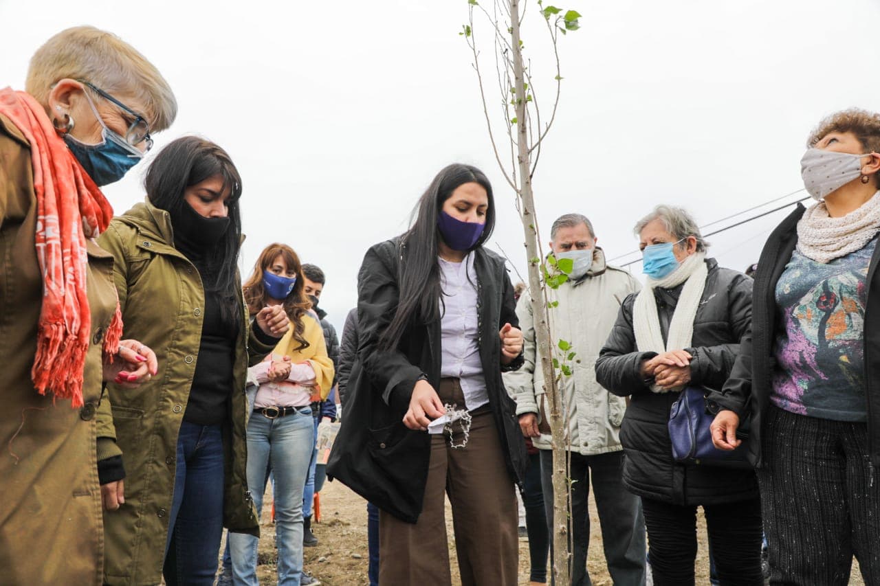 La Secretaria de la Mujer Género y Diversidad, Alejandra Arce, señaló que “es una iniciativa del Centro de Jubilados Aylin, que está compuesto mayoritariamente por mujeres, y ellas querían dejar algo a la juventud, a la posteridad, en el marco de los cien años de la ciudad”, y agregó que “nos pareció algo muy hermoso para nuestra ciudad y para estas nuevas obras que van a estar de este lado, para las cuales ya van a estar los árboles colocados”.