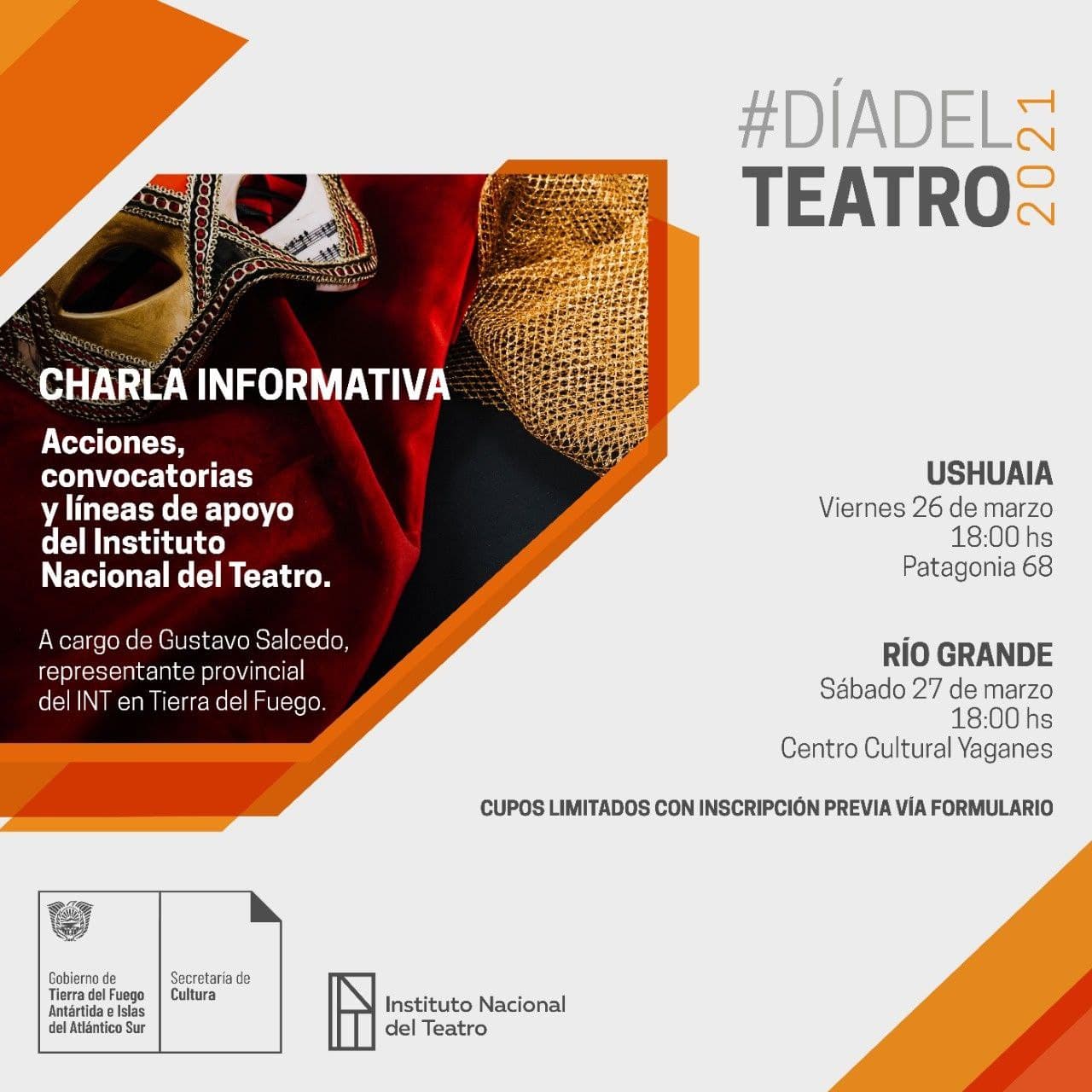La Secretaría de Cultura de la provincia convoca a la comunidad a participar de una charla informativa a cargo del referente provincial del Instituto Nacional del Teatro (INT), Gustavo Salcedo, en el marco del Día del Teatro.