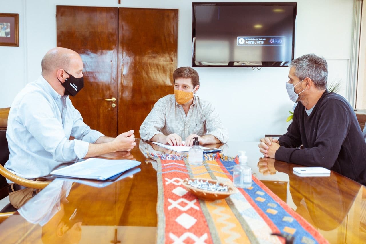 El gobernador Gustavo Melella recibió al concejal por el Partido Verde, Javier Branca y Juan Manuel Romano de FORJA, junto a quienes analizó la situación de la «Cooperativa “Nuestro Techo”.