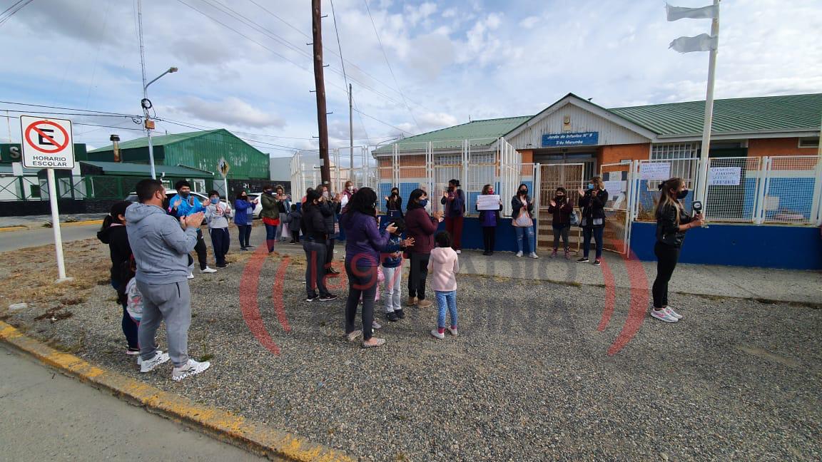 Un grupo de padres del jardín N°9 «Tutu Maramba» se manifestaron en la puerta de la institución debido a que la vuelta de la presenciailidad generó un conflicto grande al no tener las condiciones edilicias aptas para que los niños asistan.