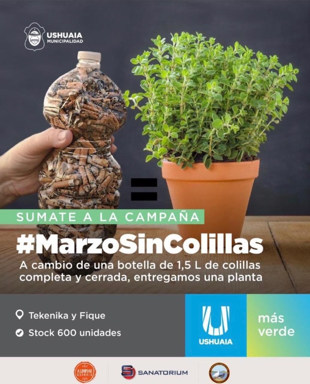 En la Secretaría de Medio Ambiente y Desarrollo Sustentable de la Municipalidad, ubicada en Damiana Fique esquina Tekenika, se recibirán las botellas de 1,5 litros con colillas y podrán ser canjeadas por una planta de interior o una planta aromática.
