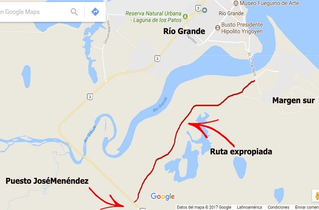 Cabe remarcar que la Legislatura provincial sancionó la expropiación del área aproximada de 24 hectáreas, para concretar el trazado de la antigua ruta nacional Nº 3, desde el sector de la Margen Sur hasta el destacamento policial José Menéndez bajo la ley provincial N° 1217.