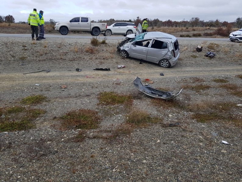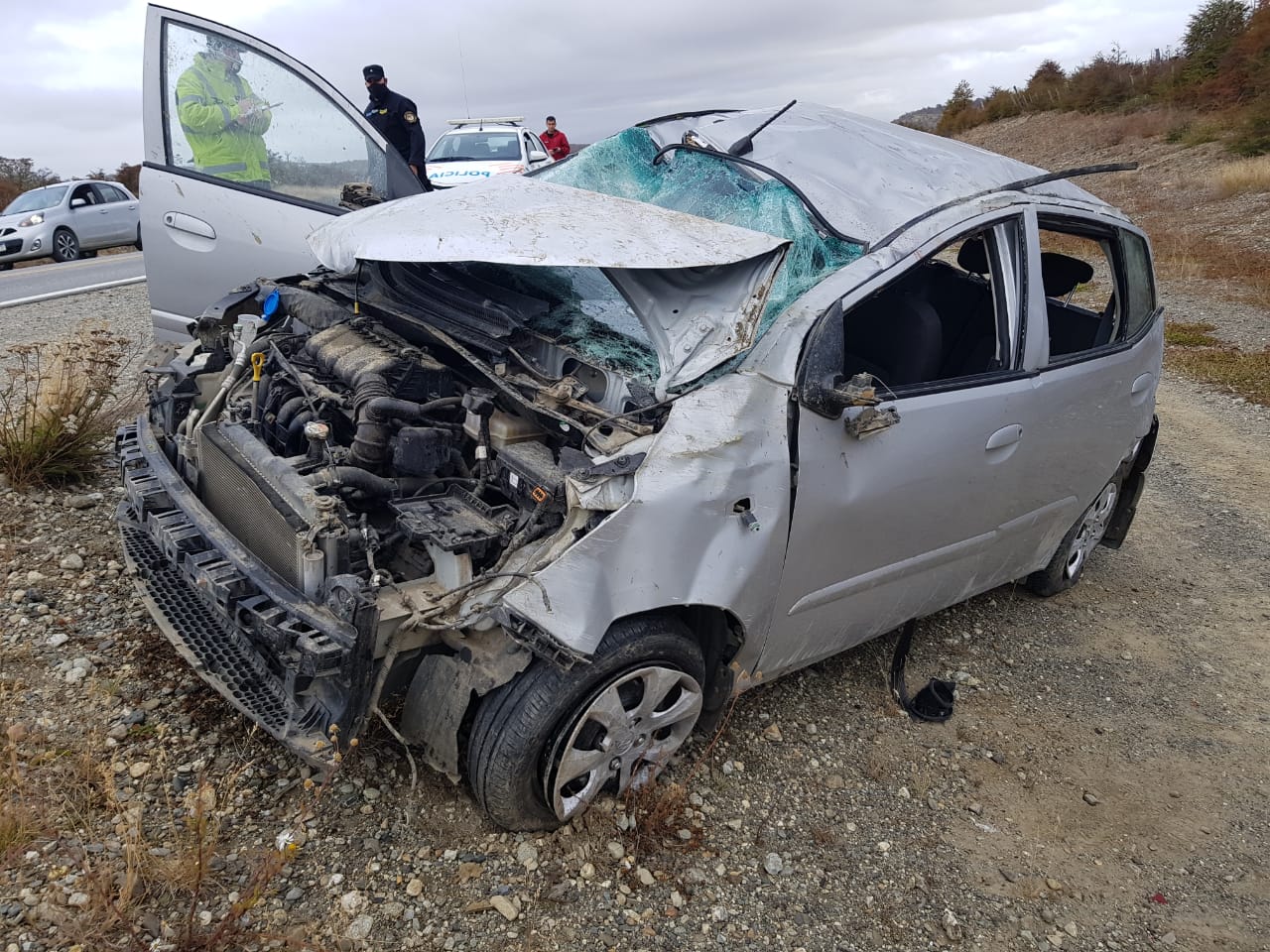 Por esa vía circulaba un Hyundai i10, al mando de Priscilla Vallone, quien perdió el control de la unidad y terminó volcado sobre uno de los laterales de la ruta.