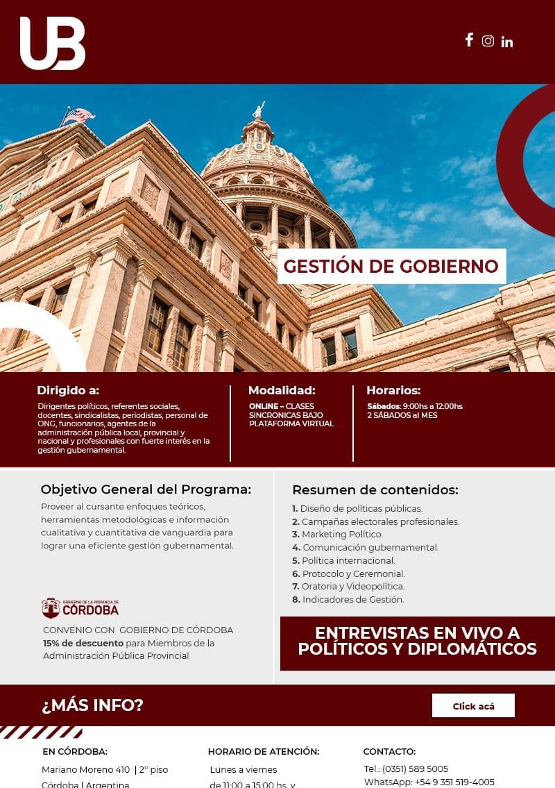 Para solicitud de información de todas las personas interesadas pueden dirigirse a la página http://www.aeducativos.org/Paginas/SolicitudInformacionRegistracionCustom.aspx?Tipo=1&prgId o bien comunicarse a los teléfonos (0351) 589 5005 y WhatsApp: + 54 9 351 519-4005.