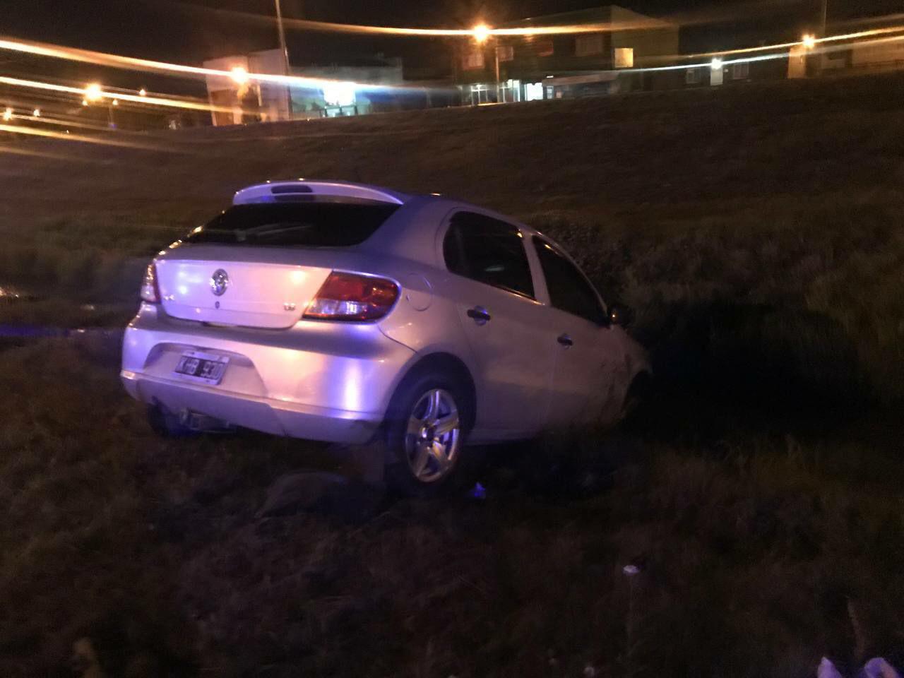 Al llegar al lugar, los uniformados se encontraron con un Volkswagen Gol Trend que había perdido el control y salido de la calzada, cayendo a una zanja a la vera de la calzada.