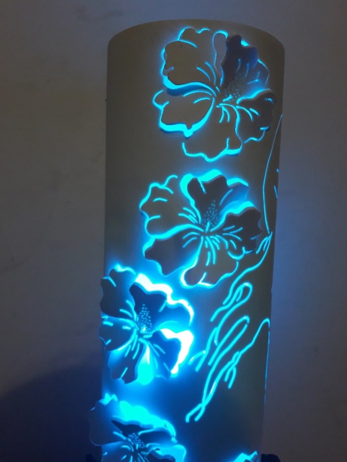 “Es un velador pero, en realidad depende, después hago lámparas de pie, que ya son con caños más grandes, con PVC de 160 o 200, entonces se hace más grande, y he hecho hasta de un metro cincuenta, todo dibujado”, detalló la fabricante y a la vez artesana.