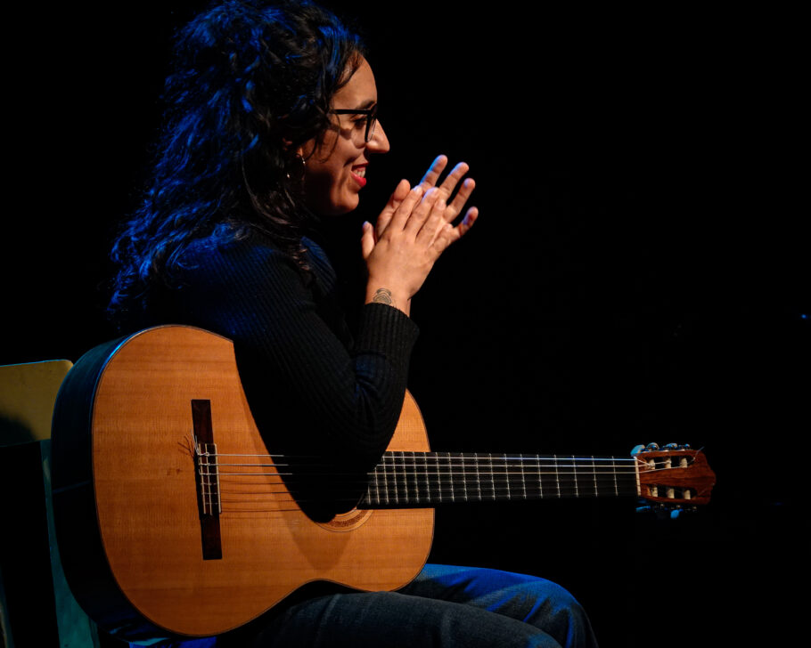 Indagando en cuándo fue la primera vez que tuvo en sus manos su primera guitarra, la música respondió que «fue a los 6 años. Vino Papá Noel. En su momento me llevaron al taller municipal que se daba en el Padre Zink, que lo dictaba el profesor Ramón Oviedo«, quien fue su primer profesor. «De ahí estuve en el Centro Polivalente de Arte, en el Centro Cultural Alem, pero por suerte siempre acompañada de otros profes que me han marcado un poco el camino que andar», destacó con felicidad.