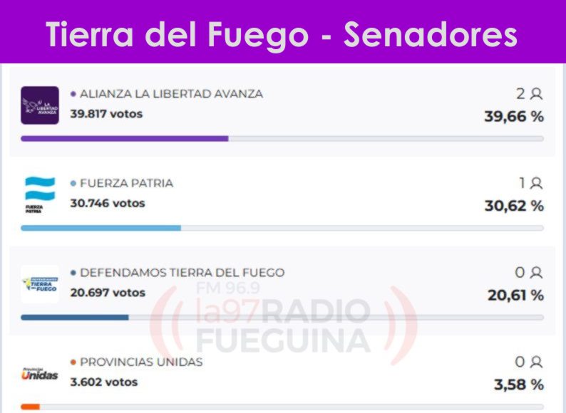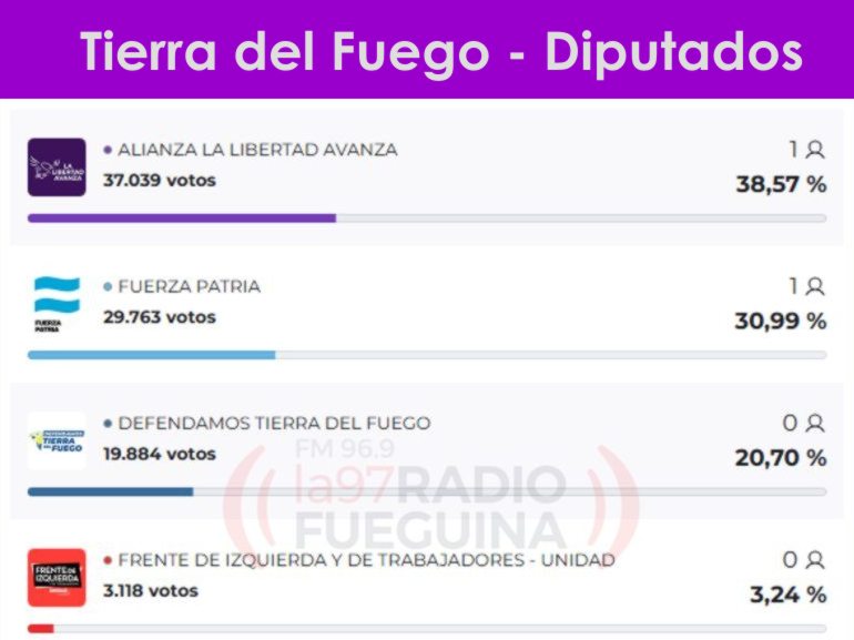 La lectura de los números revela, en cambio, una provincia segmentada. Mientras en Río Grande La Libertad Avanza obtuvo un 34%, Fuerza Patria 30% y Defendamos Tierra del Fuego 27%, en Ushuaia las diferencias fueron abismales: 46% para La Libertad Avanza, 33% para Fuerza Patria y 12.5% para Defendamos Tierra del Fuego.