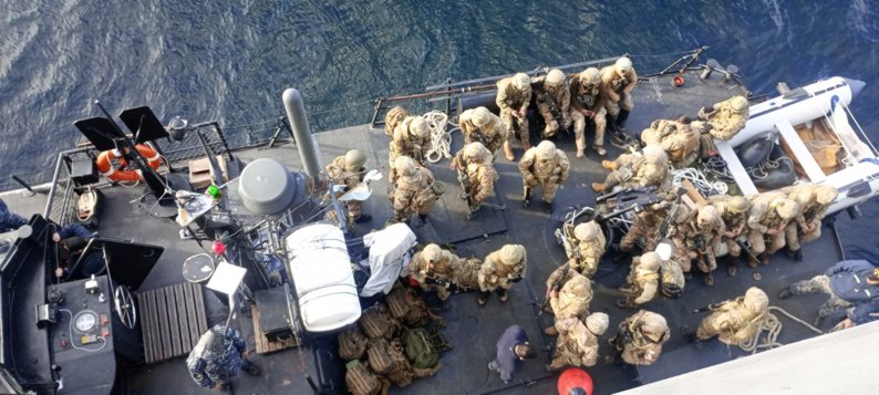 En la madrugada del 14 de octubre pasado, Infantes de Marina de la Armada Argentina emprendieron desde el Batallón de Infantería de Marina N°4 su marcha hacia el puerto militar, para embarcar en las unidades de superficie y ser desplegados en las costas del Canal Beagle, donde realizaron intensas jornadas de adiestramiento en técnicas de combate en la zona austral.
