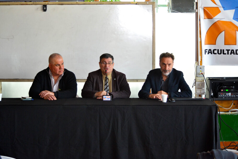 La apertura estuvo a cargo del decano electo de la UTN fueguina, Ing. Francisco Javier Álvarez, quien subrayó la trayectoria de la facultad en la temática y recordó experiencias previas (viajes de alumnos a plantas piloto en Chile, proyectos estudiantiles premiados y encuentros previos sobre hidrógeno). En el auditorio también estuvieron presentes el vicedecano electo Ing. Demian Ferreyra, el Secretario de Ciencia y Tecnología de la UTN, Ing. Gustavo Tielens, y el gerente técnico del nuevo Instituto Fueguino de la Transición Energética y el Hidrógeno, Gonzalo Montiel.