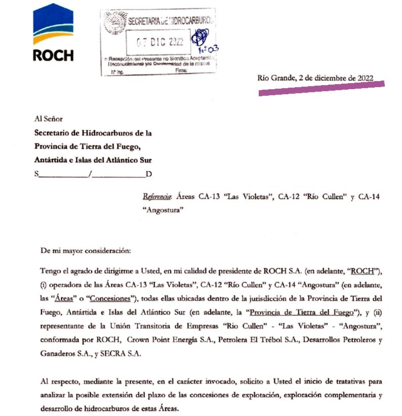 Documentación a la que tuvo acceso este medio confirma que –efectivamente- Roch inició gestiones en diciembre de 2022 para la continuidad de la concesión. Que el 16 de febrero 2023 se le respondió desde la secretaría de Hidrocarburos haciéndole conocer “los lineamientos a cumplimentar por parte de las concesionarias interesadas en prorrogar sus áreas…” a fin de cumplimentar el nuevo contrato. Y que nunca más (pasados ya largos dos años) hubo comunicación formal alguna de parte de Roch hacia el gobierno provincial.