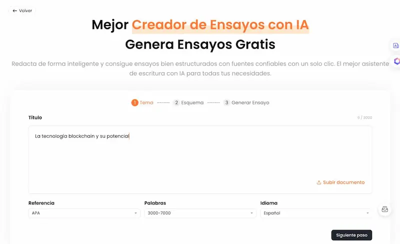 Haz clic en “Siguiente paso” y deja que la IA convierta el esquema en un ensayo completo y bien redactado.