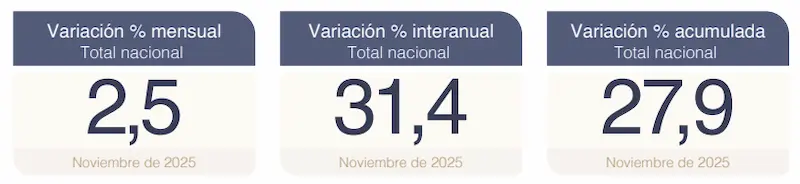 - 31,4% de variación interanual frente a noviembre de 2024.