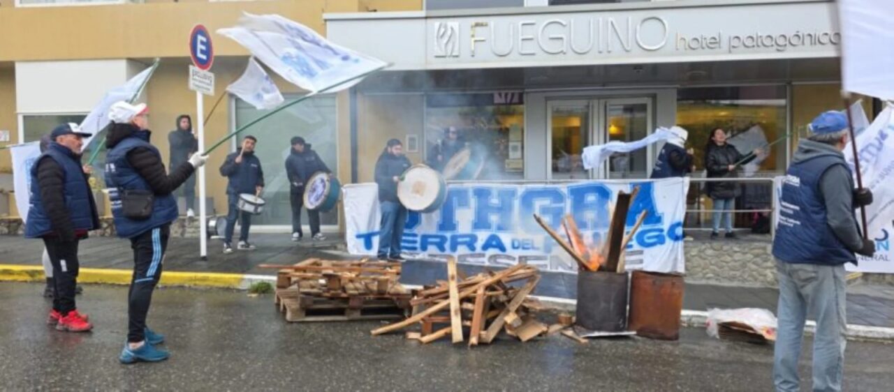Trabajadores gastronómicos se manifestaron frente al Hotel Fueguino de Ushuaia en rechazo al despido de una empleada que, según denunciaron, estuvo contratada durante más de cuatro años bajo renovaciones mensuales.