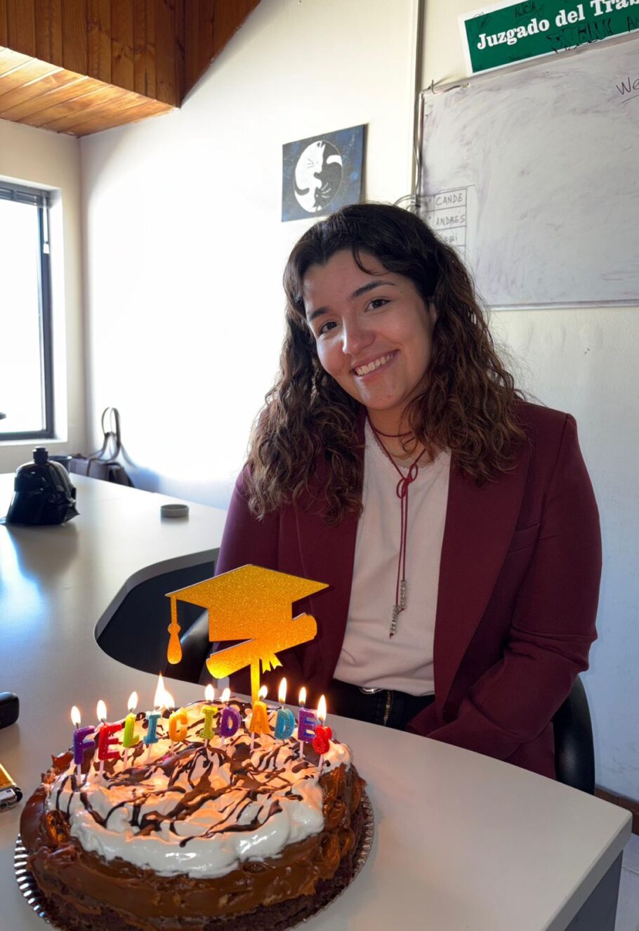 Su decisión de volver a estudiar abogacía estuvo atravesada por una búsqueda personal y por oportunidades de formación. “Yo cumplo en abril, entonces terminé la secundaria con 17 años y allá cumplí los 18 recién, y me fui porque quería echarme alas de alguna forma, quería conocer otros lugares, me quería ir a estudiar a otro lado y tuve la oportunidad ese año y medio, y después decidí volverme”.