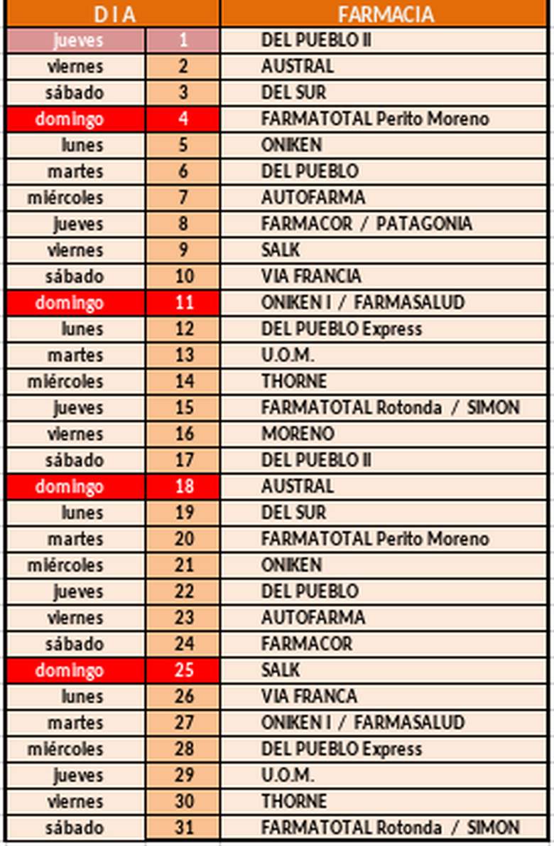 Advertencia: Este calendario puede sufrir cambios que serán informados por el Colegio de Farmacéuticos