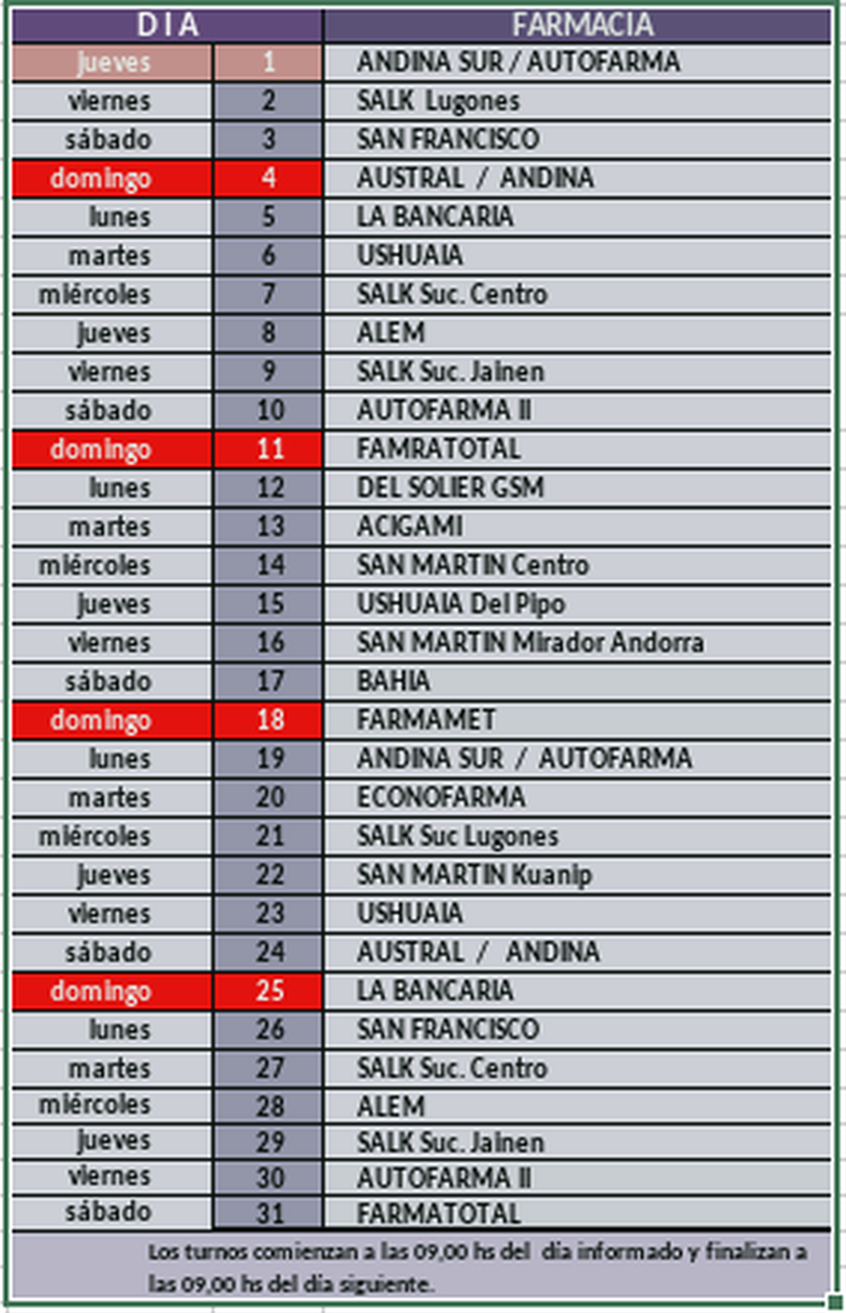 (Información suministrada por el Colegio Farmacéutico de Tierra del Fuego – ColfarTdF)