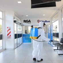 Desde la Intendencia remarcaron que «las unidades de transporte, tanto colectivos como remises y taxis, son sometidas a la sanitización con productos requeridos en el marco de la pandemia».