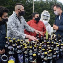 Funcionarios municipales llevaron barbijos y alcohol desinfectante para colaborar con las medidas de prevención del COVID-19.