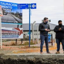 Después de estar aislado dos semanas por coronavirus, el Intendente retornó a la actividad presencial supervisando los trabajos en la calle Thorne, en compañía de la secretaria de Obras Públicas.