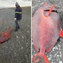 Aún no queda claro de qué especie se trata. El video del momento en que es retirado de la costa se volvió viral.