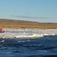 Buzos de la Prefectura Naval y personal de Obras Sanitarias del Municipio realizan denodados esfuerzos para desbloquear el caño de la toma del agua en el río Grande. Bajo extremadas temperaturas bajo cero los buzos se introducen en el acueducto para destapar la entrada del agua para para ser bombeada a la planta El Tropezón.