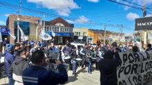 En ((La 97)) Radio Fueguina brindamos cobertura a la manifestación de la Unión Obrera Metalúrgica en Tierra del Fuego en contra de los candidatos de LLA y la gestión presidencial.